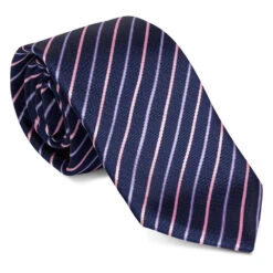 Uptheir All Over Diagonal Striped Extra Long Tie – Navy Pink