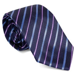Uptheir All Over Diagonal Striped Extra Long Tie – Navy Lilac