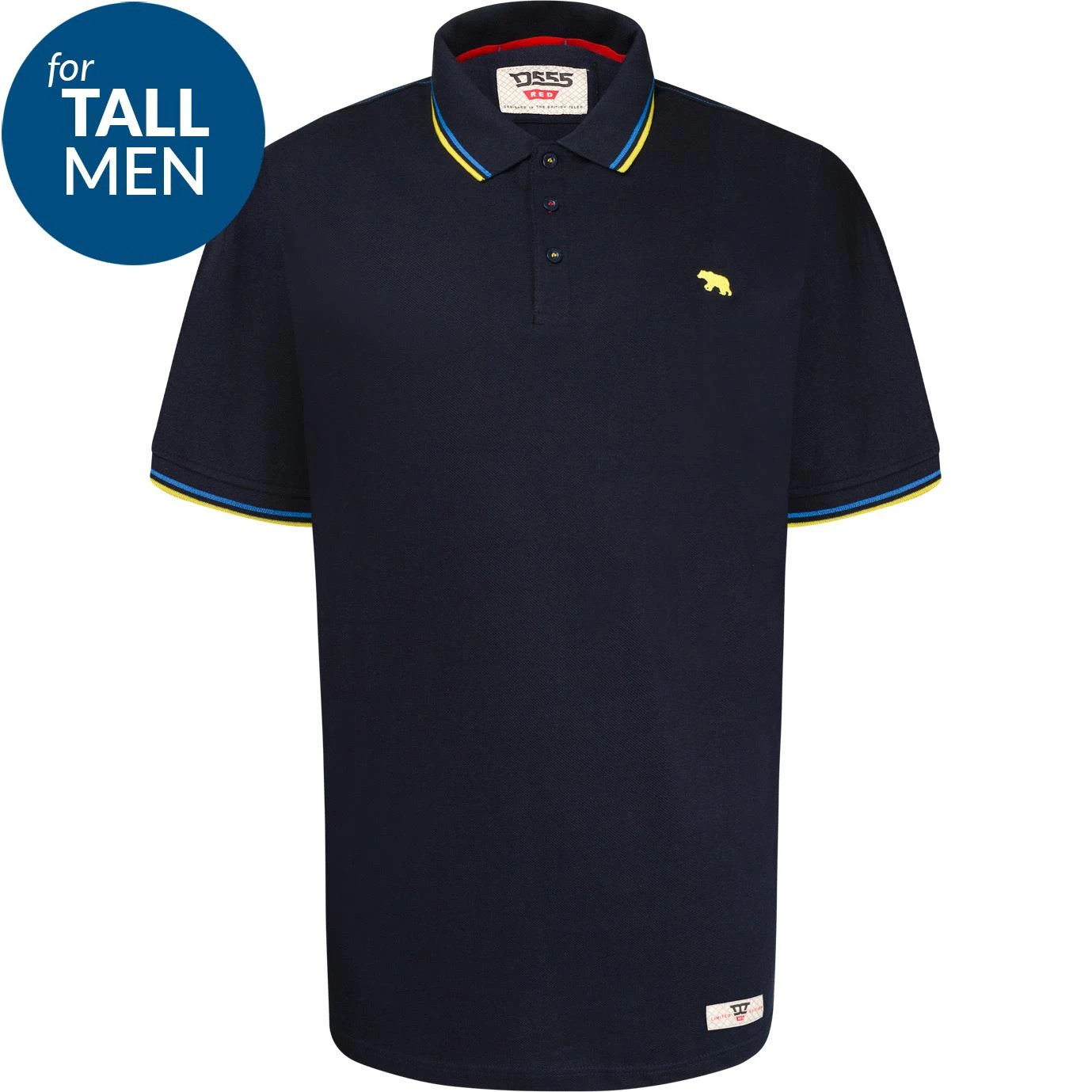 - D555 Hamford TALL Tipped Collar Pique Polo Shirt – Navy