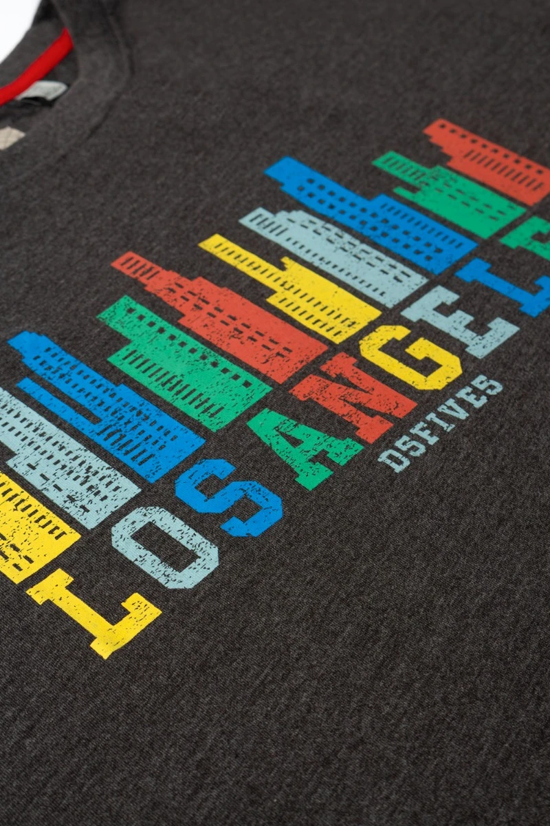 - D555 Hemford Los Angeles Skyline Print T-Shirt – Charcoal Marl