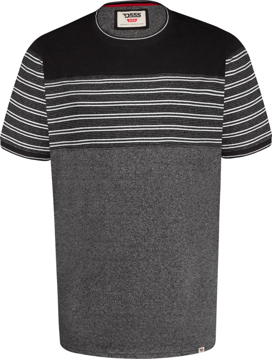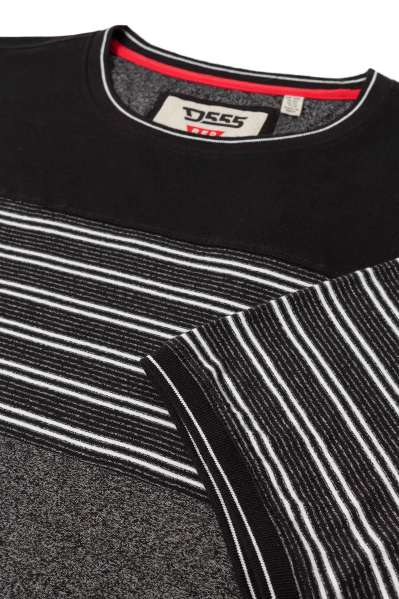 - D555 Jericho Cut and Sew Striped Crew Neck T-Shirt – Black