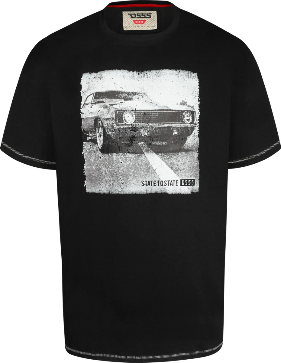 - D555 Kenton Retro Car Graphic Print T-Shirt – Black