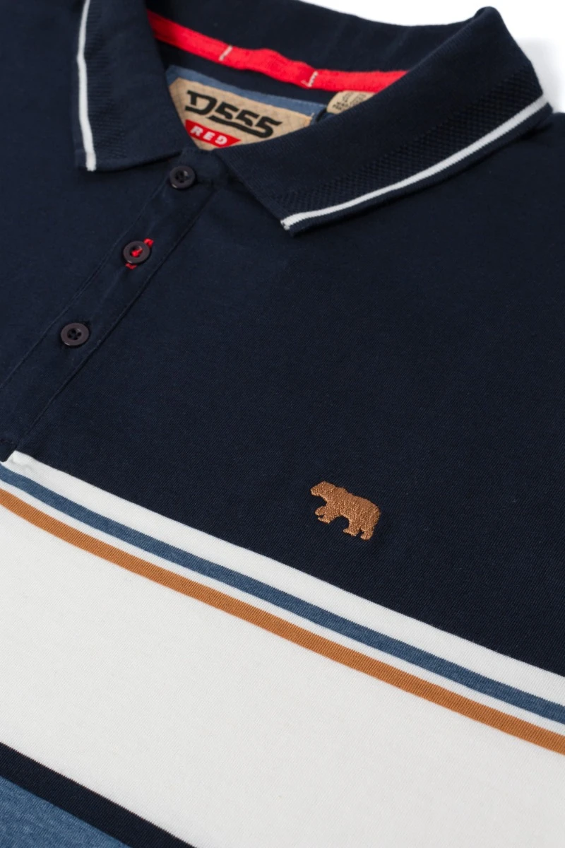 - D555 Offley Stripe Jersey Short Sleeve Polo Shirt – Navy