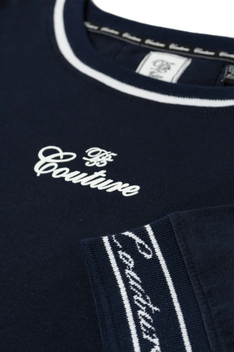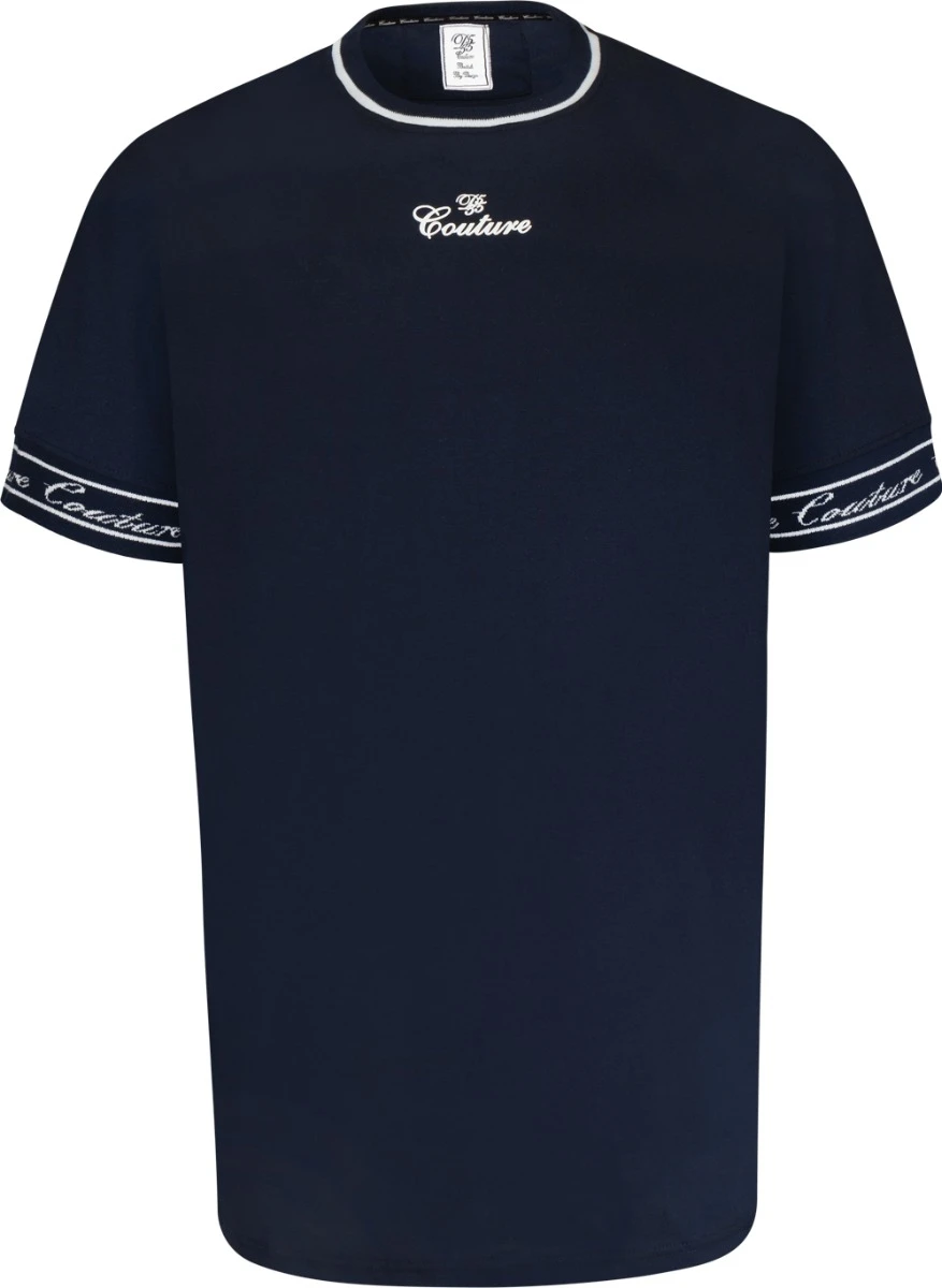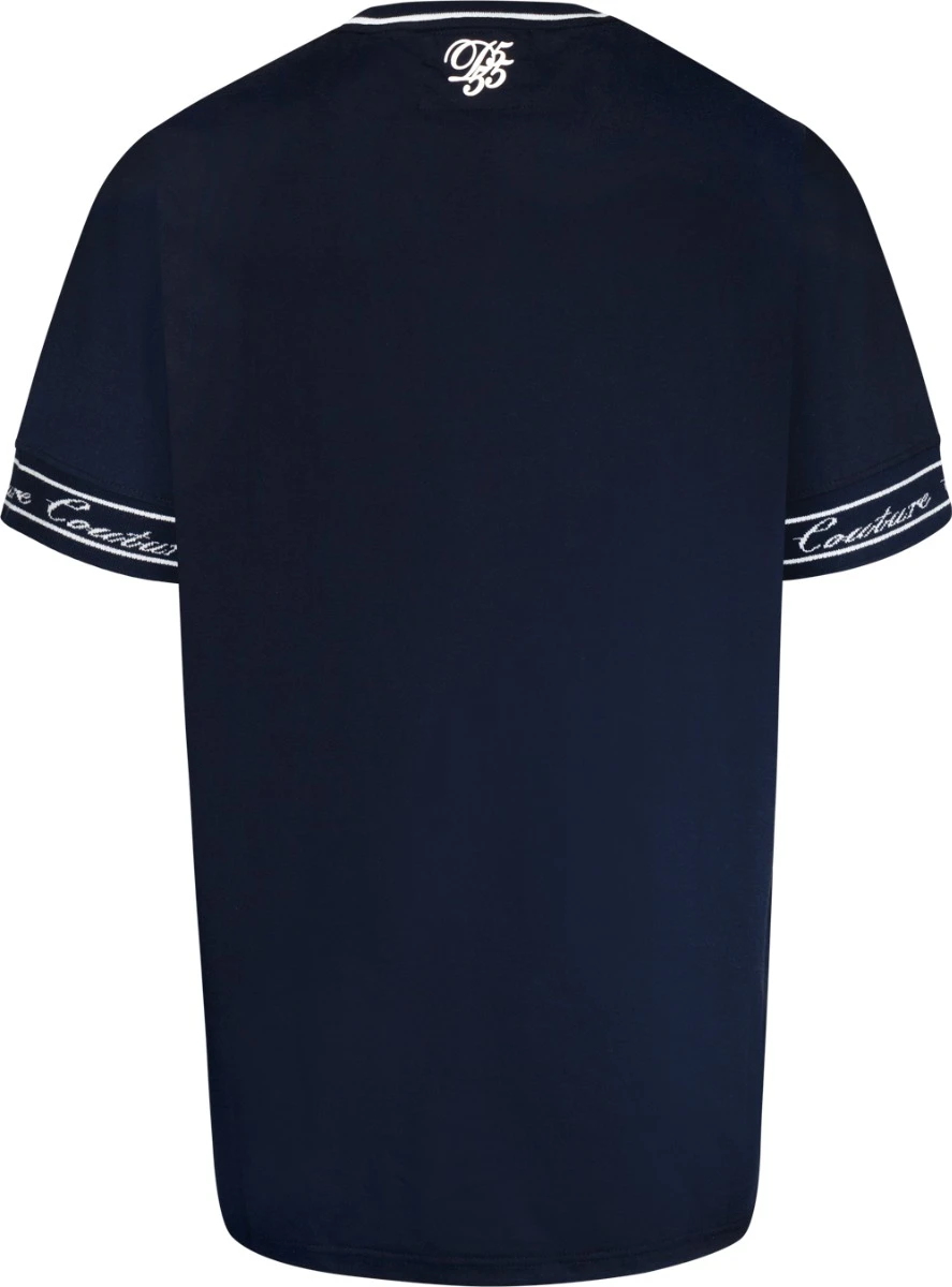- D555 Ramsey Couture Trim Chest Print T-Shirt – Navy