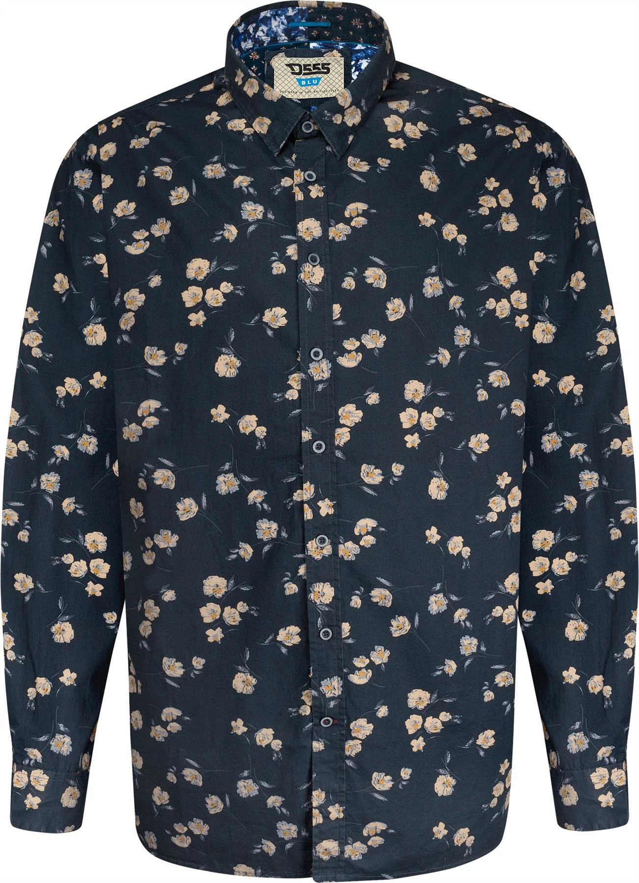 - D555 Rooksey Long Sleeve Floral Pattern Shirt – Dark Navy
