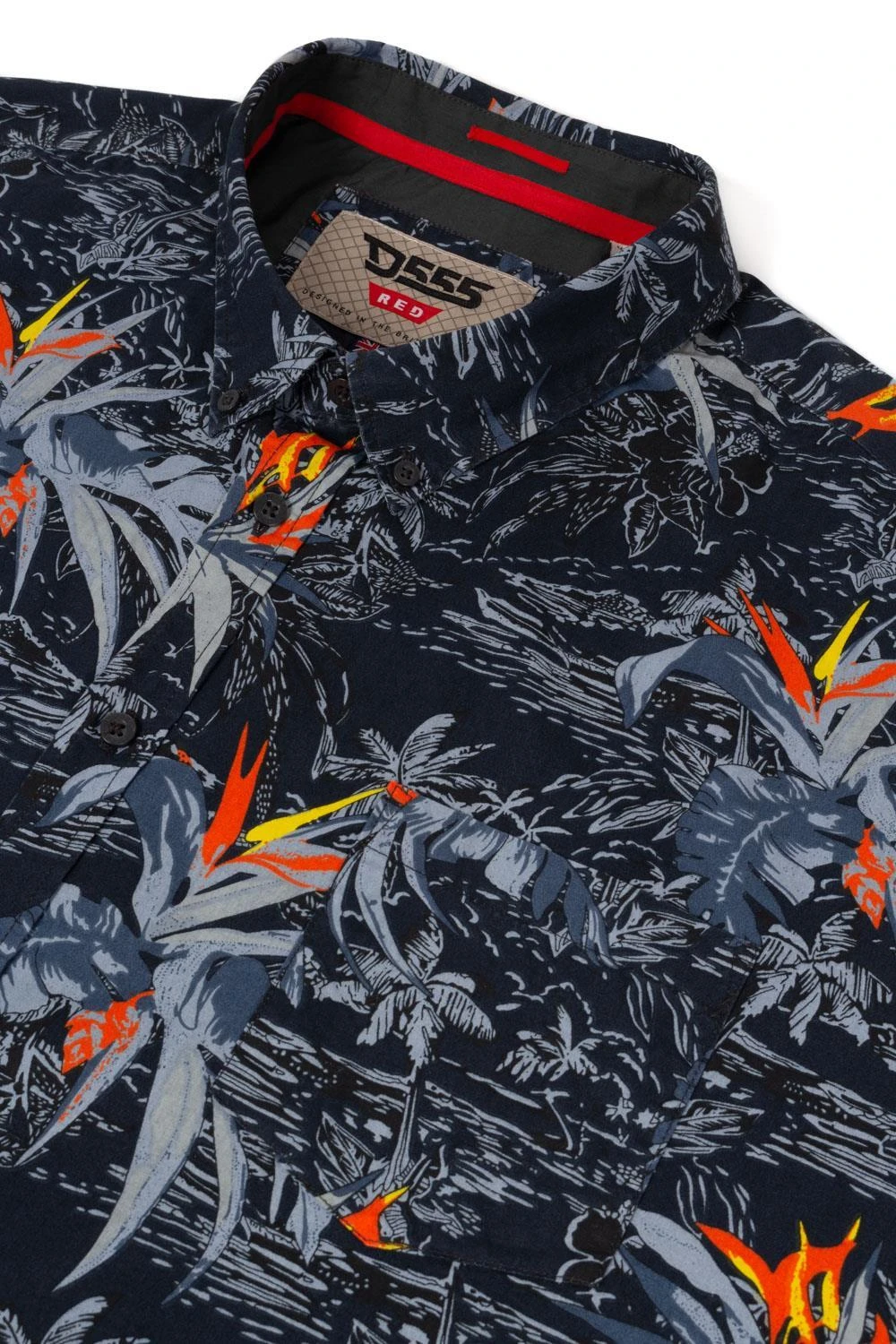 - D555 Severn Tall Hawaiian Print Button Down Shirt in Charcoal