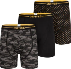 - D555 Sylvester Patterned Stretch 3 Pack Boxers – Black