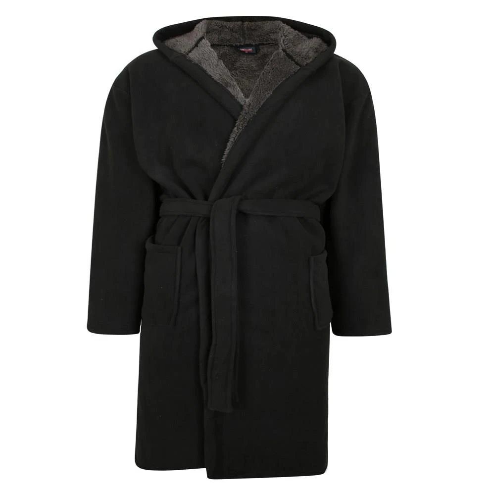 - Espionage Bonded Fleece Hooded Dressing Gown – Black Charcoal