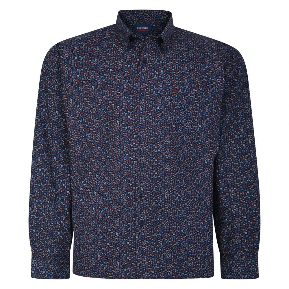 - Espionage Long Sleeve Floral Patterned Shirt – Navy Wine