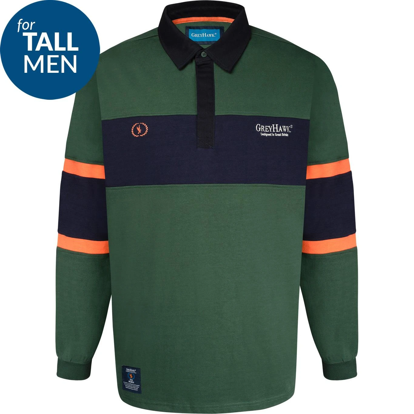 - Grey Hawk TALL Long Sleeve Panel Rugby Polo Shirt – Green