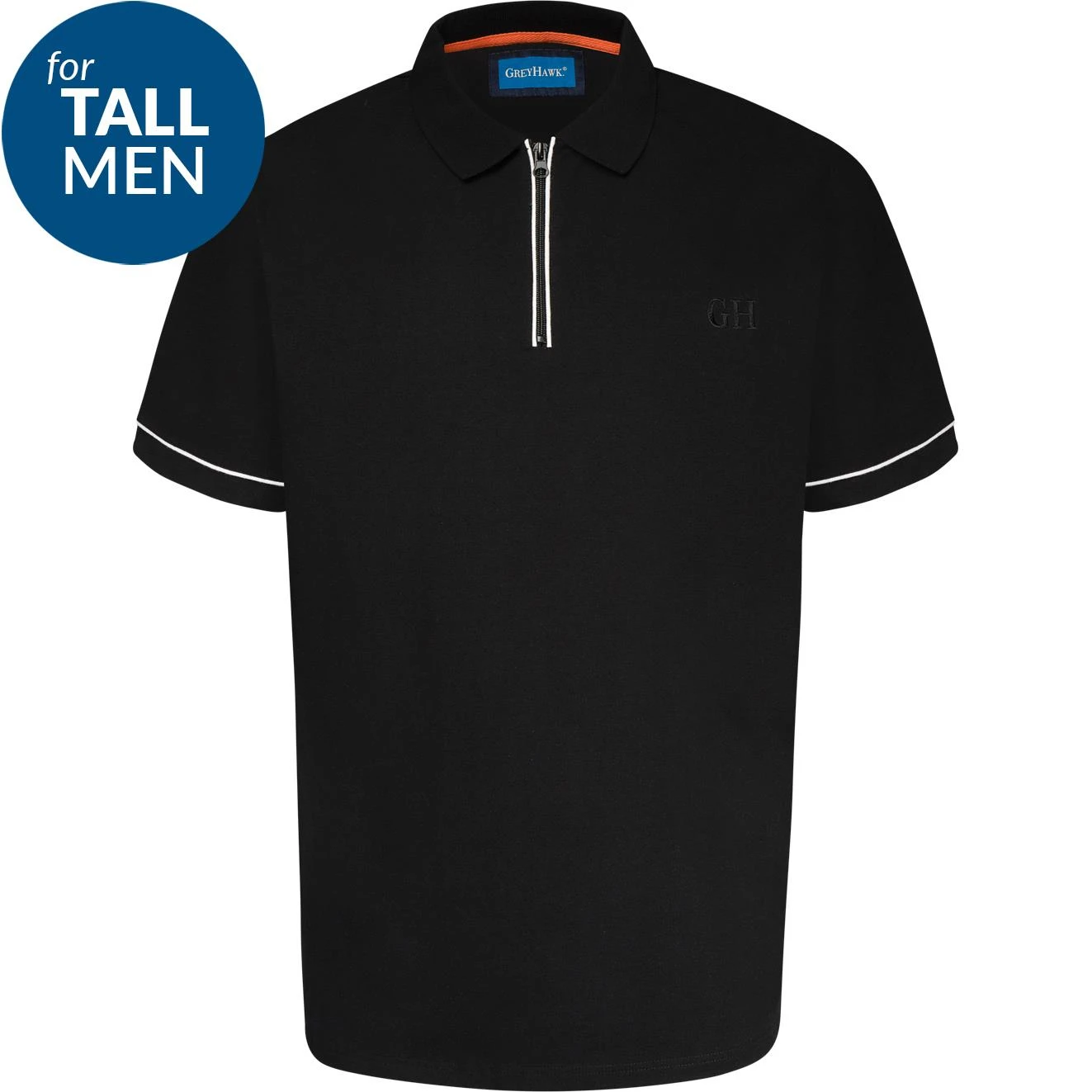 - Grey Hawk TALL Smart Zip Neck Polo Shirt – Black