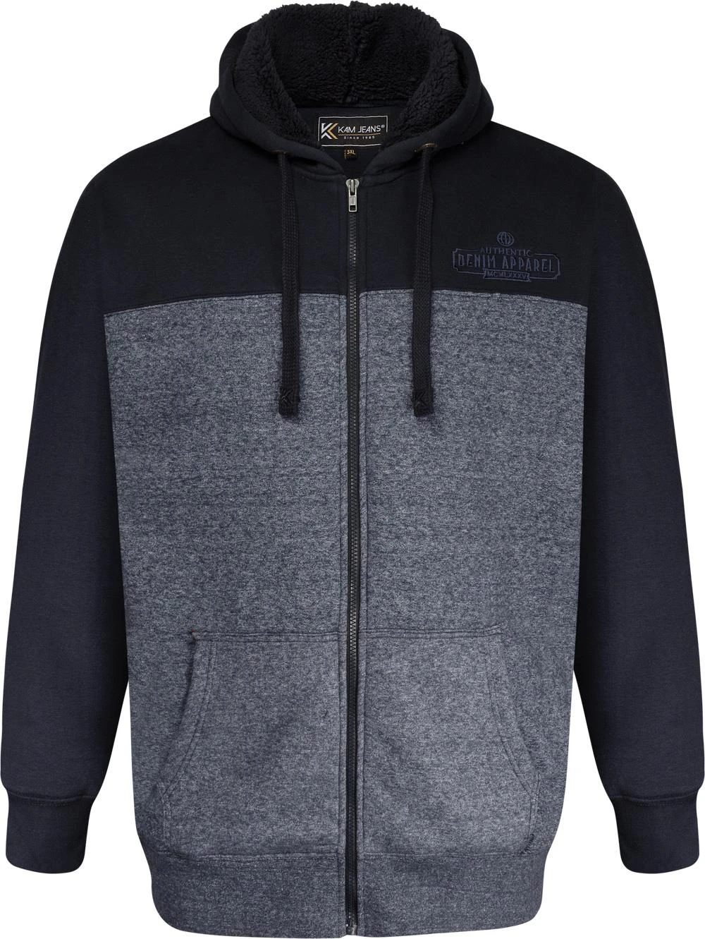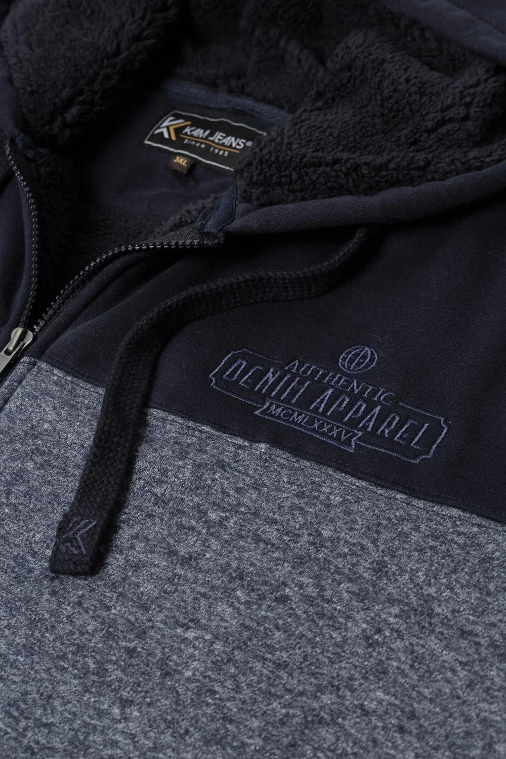 - Kam Block Panel Sherpa Lined Hoody – Navy