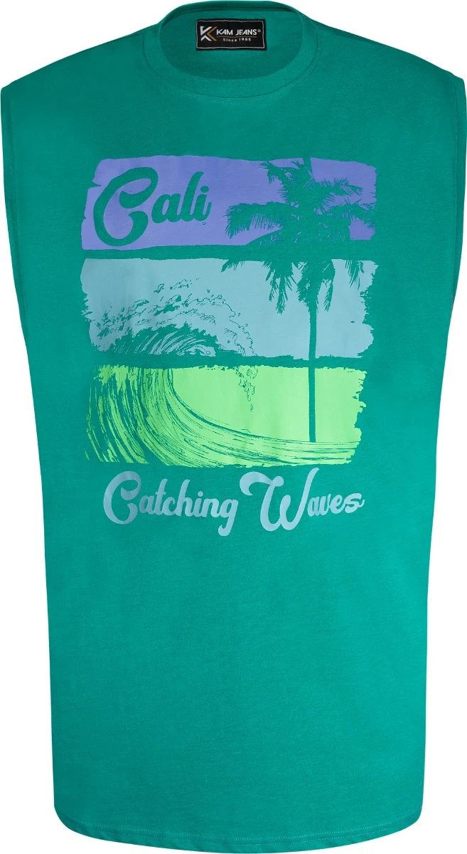 - Kam California Wave Print Sleeveless T-Shirt – Emerald Marl