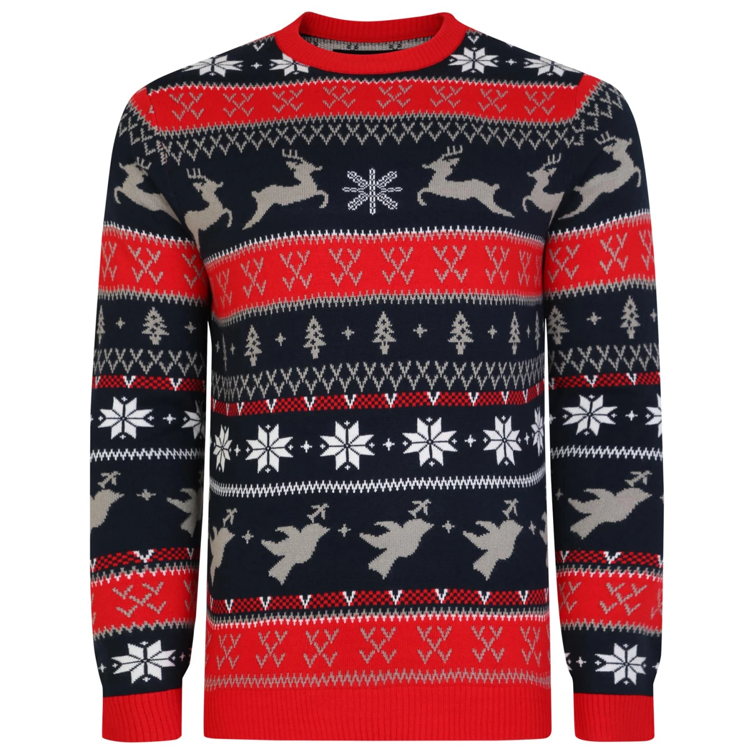 - Kam Festive Reindeer Crew Neck Christmas Jumper – Red