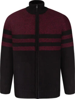 - Kam Full Zip Through Marl Stripe Jumper – Black Burgundy