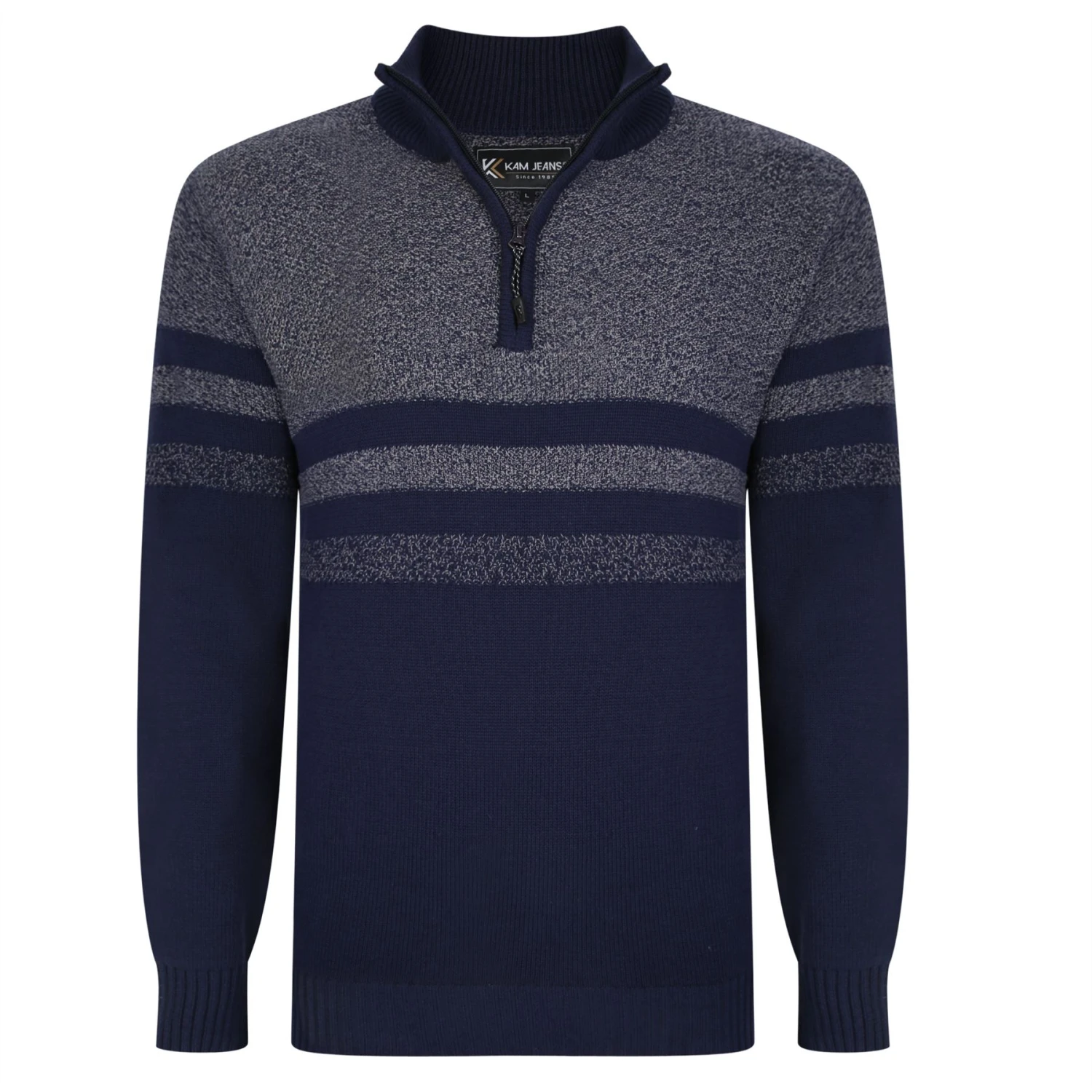 - Kam Marl Stripe 1/4 Zip Jumper – Navy