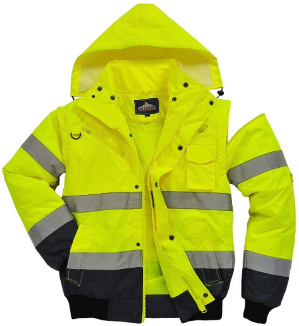 - Portwest Hi-Vis contrast bomber jacket in yellow with navy trim
