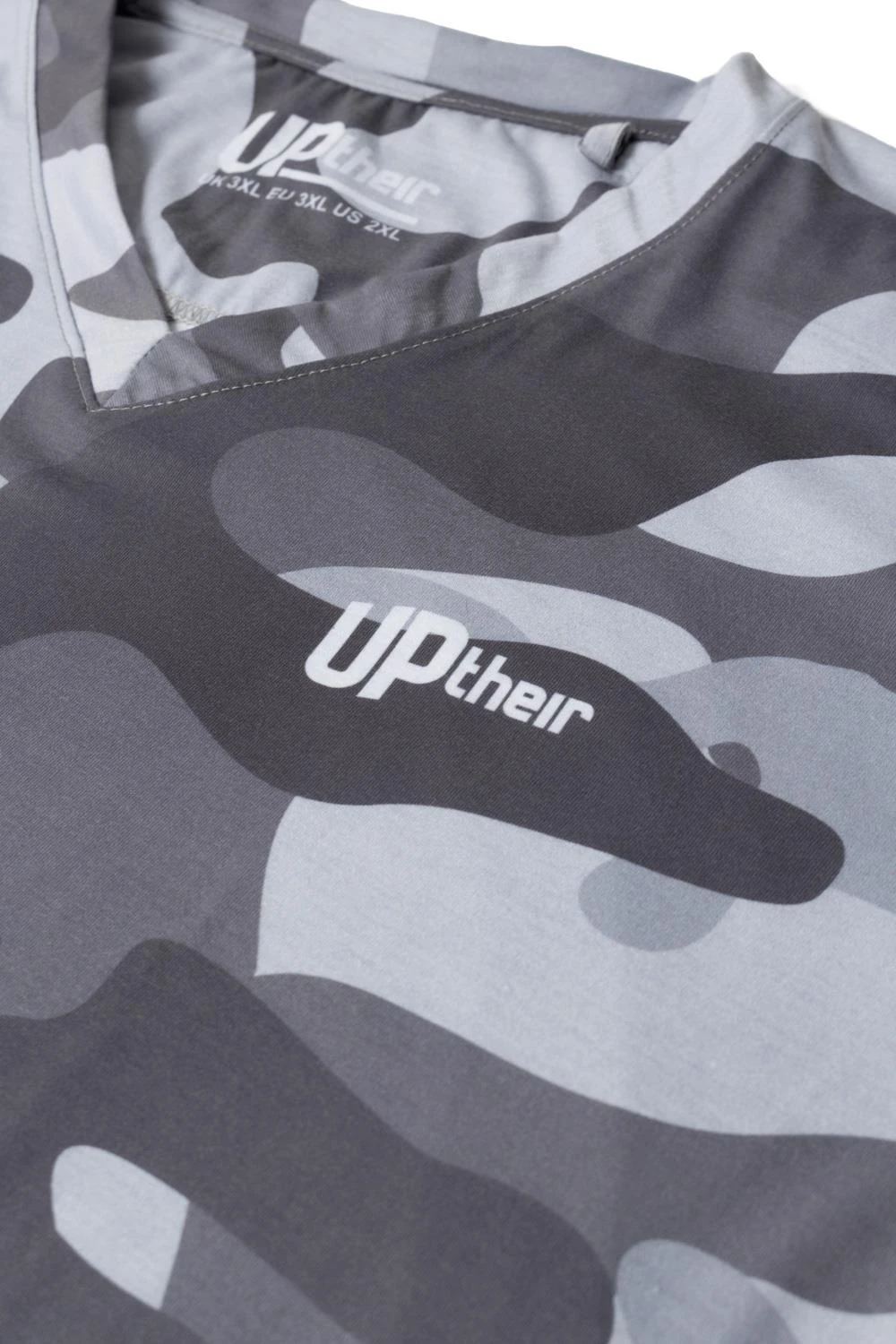 - Uptheir Bags Gradient Camo Print V-Neck T-Shirt – Grey