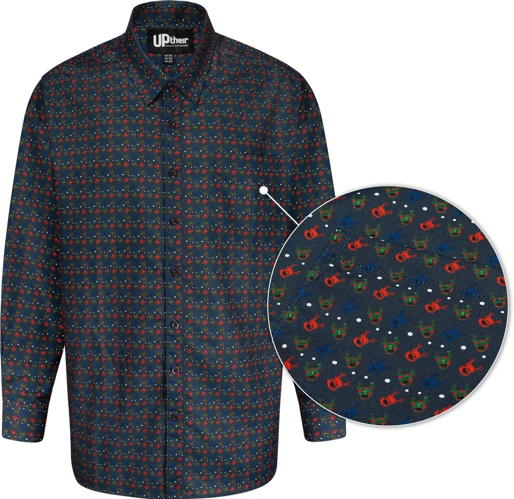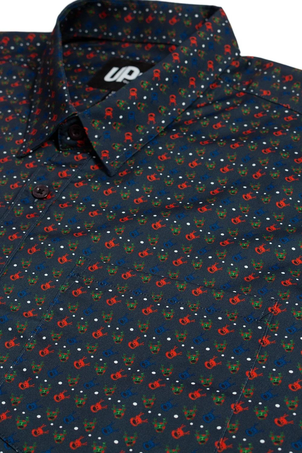 - Uptheir Blitzen All Over Reindeer Print Shirt – Dark Sapphire