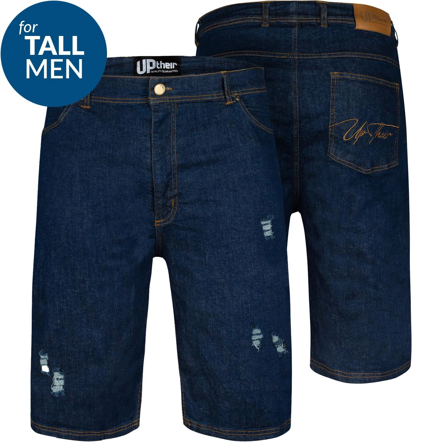 - Uptheir Bucky TALL Distressed Classic Denim Shorts in Blue Wash