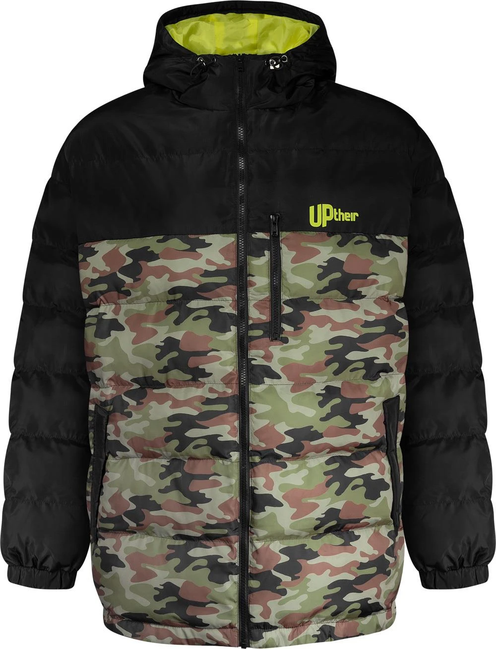 - Uptheir Dace Hooded Camo Block Puffer Jacket – Black Camo