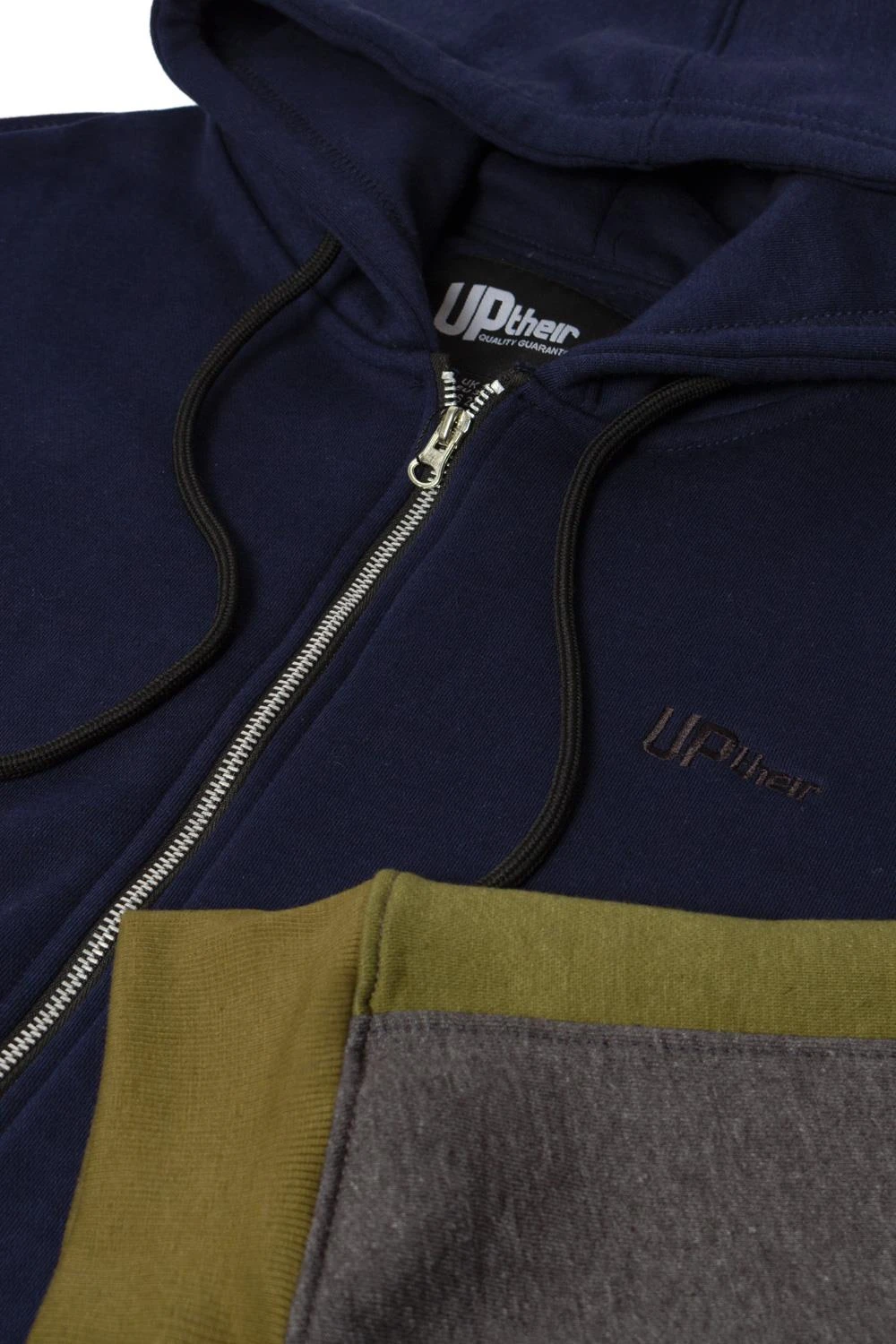 - Uptheir Harlem Colour Block Zip Through Hoodie – Navy Grey Marl