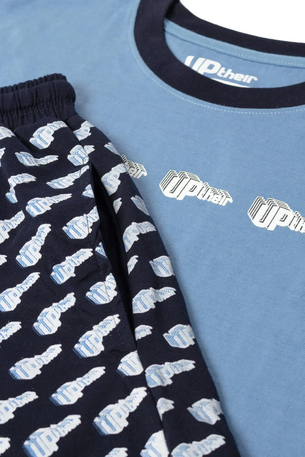 - Uptheir Leia Logo Print Crew Neck SS Pyjama Set – Blue