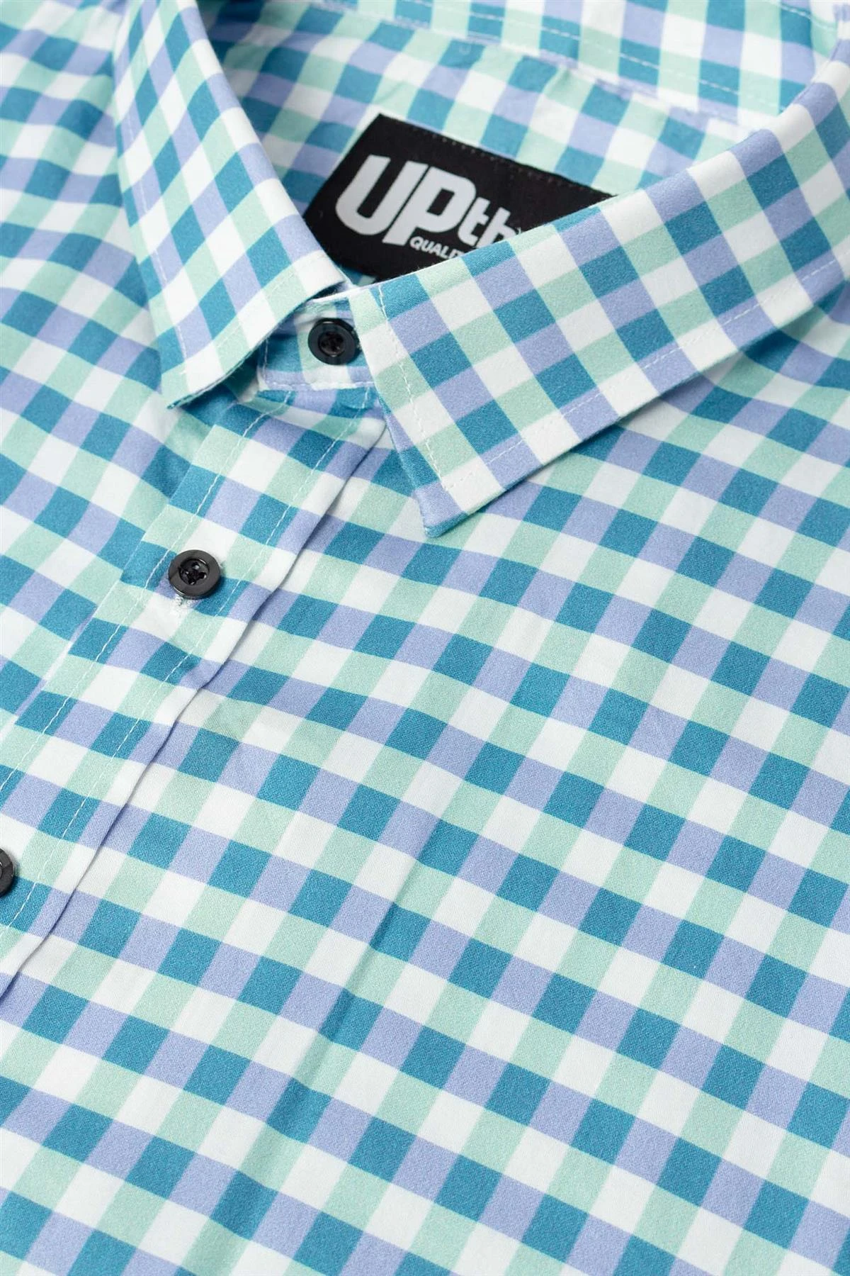 - Uptheir Malpas Short Sleeve Checked Shirt – Blue