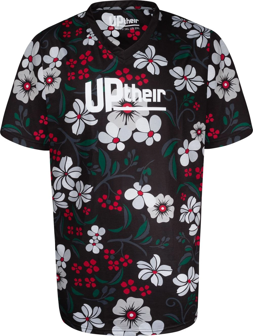 - Uptheir Pollen Floral V-Neck T-Shirt – Black