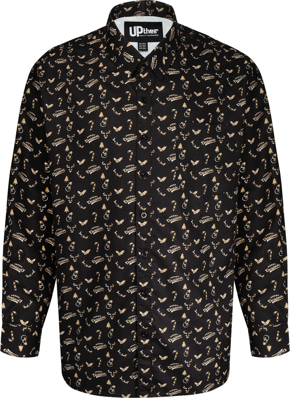 - Uptheir Yule All Over Gold Foil Print Shirt – Black
